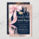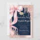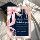 Invitation Pink Bow Glitter Grad Cap,Drips Photo Navy Blue