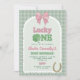 Invitation Pink Bow Horseshoe Clover Lucky One Birthday