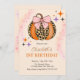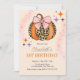 Invitation à la fête d'anniversaire d'Halloween. Invitation de bash d'Halloween avec arc rose, citrouille léopard et étoiles.