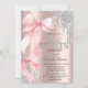 Invitation Pink Bow Silver Glitter Drips Rose Gold Sweet 16
