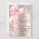 Invitation Pink Bow Silver Glitter Drips Rose GoldQuinceañera