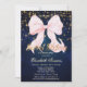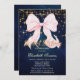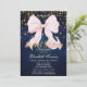 Invitation Pink Bow Sparkle Navy Blue