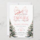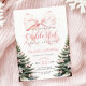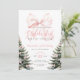 Pink Bow Winter Onerderland Girl 1st Birthday Invitation avec pins et détails arc rose.