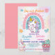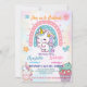 Invitation Pink Cute Unicorn dinosaures arc-en-ciel fête d'an