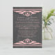 Elégante et chic Faire-part de mariage Deco Chalkboard avec une texture chalkboard à la mode arrière - plan et une paire de bordures pivotantes art déco rose clair. Cette belle faire-part de mariage est parfaite pour une mariage à thème art déco des années 1920. Facile à customiser, il suffit d'ajouter les détails de votre mariage. Cliquez sur "Customiser" pour trouver d'autres options de personnalisation.
