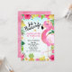 Invitation Pink Flamingle Floral Foliage Anniversaire
