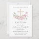Invitation Pink Floral Cross Eucalyptus Leaves Baptism