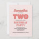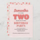 Célébrez la fête du deuxième anniversaire de votre petite fille avec cette adorable invitation ! Doté d'une typographie "deux" rose, d'un joli motif floral et d'un modèle simple, ce design est parfait pour une célébration moderne et minimaliste. Le script de calligraphie fantaisiste ajoute un charme ludique, tandis que les élégantes fleurs chic créent une ambiance chic et chic. Personnalisez cet invitation amusant et sucré aujourd'hui pour une fête d'anniversaire mémorable !