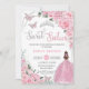 Invitation Pink Floral Light Brown Princess Sweet 16 Birthday