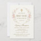 Invitation Pink Floral Wreath Cross Girl First Communion