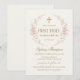 Pink Floral Wreath Cross Girl First Communion Invitation