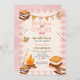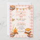 Invitation Pink Gingham Fall Camping Bonfire Smores