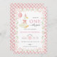 Invitation Pink Gingham Floral One Silly Goose 1st Birthday