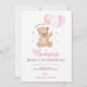 Invitation Pink Girl Teddy Bear Balloon First Birthday