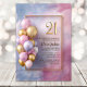 Invite your friends and loved ones to your 21st birthday celebration with this modern invitation that features a stylish gold frame and pink, gold and lavender balloons. The customizable text area in this invitation template allows you to include all the necessary details for your special birthday celebration, including the date, time, venue, and RSVP information. A variety of paper types and corner styles are available for your unique invitations, along with the option to download if you prefer a digital format.