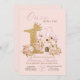 Invitation Pink Gold Crown Castle Princess 1er anniversaire