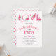 Pink LOVE et rose Valentines Day party Invitation. Célébrez la Saint-Valentin avec un air de sophistication et de romantisme en invitant vos invités avec nos exquises invitations de fête. Ces invitations ont pour but de donner le ton parfait à votre célébration de la Saint-Valentin. Le design présente un motif rose sombre qui incorpore magnifiquement une diffusion de coeurs, créant un effet captivant visuellement. Le mot "LOVE" est présenté dans une typographie élégante et décorative, qui présente une transition subtile mais frappante d'un rose pâle délicat à un rose plus riche et plus foncé. En plus du charme, l'invitation est agrémentée de délicats bouquets romantiques de roses roses, évoquant des sentiments d'amour et de chaleur. Pour rehausser l'ambiance romantique, le revers de l'invitation dévoile un motif délicieux de coeurs rose sombre, une surprise subtile et sucrée qui ravira sûrement vos destinataires. Cette invitation est la meilleure façon d'annoncer votre fête de la Saint-Valentin chic et chaleureuse.