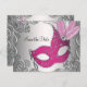 Belle carte postale d'invitation de fête masquée rose pour enregistrer la date. Vous pouvez supprimer l'argent du dos si vous voulez du blanc ou ajouter la couleur de fond de votre choix.