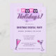 A fun retro design featuring midcentury modern elements with a "Ho Ho Holidays" billboard in various shades of pink and purple, and cocktails on a lavender background. Personalize this Christmas Cocktail Party invitation with your own party details. You can change the color of the background and the cocktails to suit your own style.