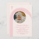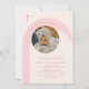 Invitation Pink Modern Boho Arch Cross Girl Photo Baptême