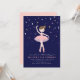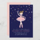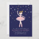 Danse de ballerine personnalisée sous l'invitation d'anniversaire étoilée. Avec ballerine en tutu rose avec lunes, étoiles, étincelles et arrière - plan bleu marine foncé. Chic, classe et élégant. Il est doté d'une conception avant et arrière. Personnaliser avec nom, âge et détails du parti. Options d'image Ballerina disponibles. Parfait pour les petits ballerines, ballet ou danse sous le thème de la fête.