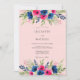 This design features a lush arrangement of watercolor anemones in vibrant shades of magenta and deep navy blue. Set against a soft blush pink backdrop, the floral borders create a romantic and artistic aesthetic for a warm-weather event. Delicate sage green leaves and berry accents complement the bold blossoms, adding a touch of botanical elegance.