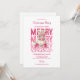 Invite friends and family to a holiday gathering in style with this whimsical pink nutcracker design. Featuring stacked "Merry Merry Merry Christmas" lettering, a cheerful nutcracker flashing a peace sign, and elegant fonts throughout, this invitation is equal parts festive and fabulous.