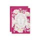 Lovely vintage romantic soft colors of lillies of the valley and peonies done in pinks and ivory shades. Perfect for any season wedding. All done on a pink fuscia background with a faux gold rustic frame.