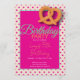 Fun design pink polka dots, cute birthday invitation card.