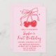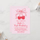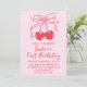 Invitation Pink & Red Bow Cherry Fruit 1st Birthday Party