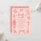 Featuring hand-drawn holiday icons — Santa, champagne glasses, candy canes, and more — in cheerful coral pink tones, this invitation sets the perfect mood for your Christmas or New Year’s bash.