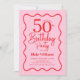 Invitation Pink Red Retro 50th Birthday Wavy Border