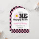Pink Retro One Happy Babe 1st Birthday Invitation Célébrez le jalon de votre petit avec style avec notre Pink Retro One Happy Babe 1st Birthday Invitation! Ce charmant design est doté d'un arrière - plan à damiers rose et noir animé, donnant une ambiance rétro audacieuse. Une adorable clipart de marguerite souriante ajoute une touche de fantaisie, ce qui en fait le choix idéal pour une fête de premier anniversaire amusante et joyeuse. Entièrement personnalisable, cette invitation est parfaite pour partager tous les détails de la fête avec la famille et les amis. Que vous soyez en train d’organiser une jardin ou une soirée intérieure, cette invitation ludique et branchée donne le ton d’une journée remplie de rires et de souvenirs.