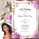 This elegant pink and gold 18th birthday debut invitation has pink roses and gold butterflies with a personalizable template to create your own message. Add your photo on the back to personalize the image. The invitation template is customizable in the listing editor and is also available as a digital download that's printable after you personalize it. This is a modern, blingy design that's still traditional enough for an elegant milestone birthday.