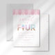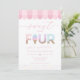 Celebrate your toddler's milestone with this "Sweet to be Four" ice cream parlor birthday invitation. This adorable design features watercolor sprinkle typography, a classic pink awning, and a whimsical sundae aesthetic. Perfect for a summer ice cream social, this cheerful invite is easily personalized to scoop up some fun for your daughter’s sixth birthday party.