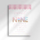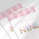 Celebrate your toddler's milestone with this "Sweet to be Nine" ice cream parlor birthday invitation. This adorable design features watercolor sprinkle typography, a classic pink awning, and a whimsical sundae aesthetic. Perfect for a summer ice cream social, this cheerful invite is easily personalized to scoop up some fun for your daughter’s third birthday party.