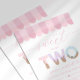 Celebrate your toddler's milestone with this "Sweet to be Two" ice cream parlor birthday invitation. This adorable design features watercolor sprinkle typography, a classic pink awning, and a whimsical sundae aesthetic. Perfect for a summer ice cream social, this cheerful invite is easily personalized to scoop up some fun for your daughter’s second birthday party.