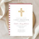 Invitation de confirmation de la Croix Religieuse sur les rayures roses personnalisées.