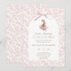 Elegant baby shower invitation featuring a sweet bunny in a pink tutu with a soft floral toile background and delicate ribbon detail. A romantic spring design that feels classic, feminine, and refined—perfect for a bunny-themed baby shower or chic baby sprinkle.