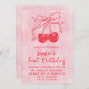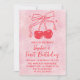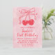 Invitation Pink Watercolor Bow Fruit Cherry First Birthday