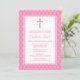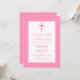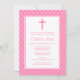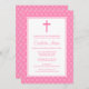 Invitation votre famille et vos amis avec style avec cette invitation moderne de Christening ou Baptême. Doté d'un point de polka motif et d'une croix rose en rose et blanc. customisez facilement vos informations !