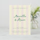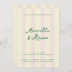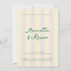 For the epically chic and modern couple, invite guests to a modern and elevated wedding with coastal Italian tennis club vibes with butter yellow and shell pink vertical cabana style stripes. This sleek and chic dark green text is easy to personalize with event details like the couple's names, time, date, location, plus additional text on the back for dress code, reception and more info. This design mixes modern sans serif type with a hand-written style script for an elevated but still casual vibe fit for any chic venue, from beach club to tennis club and beyond.