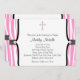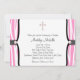 Jolie invitation à baptiser zèbre rose. Ce baptême de bébé zèbre rose doux et moderne, baptême, baptême, première communion, confirmation ou autre invitation à la cérémonie religieuse est facilement customisé pour votre événement en ajoutant les détails de votre événement, le style de police, la taille et la couleur de la police et le libellé. Veuillez noter que tous les modèles de cartes et d'invitations que vous trouverez sur Zazzle sont des graphiques imprimés sans bijoux, arcs, surélevés, gaufrés, ou des pièces ou pièces ajoutées.