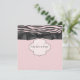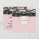 Stylish rose zèbre rayures noir et rose minuscule invitation baby shower diva.