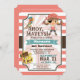 Ahoy, Mateys ! Amusant, mignonne thème nautique pirate de mer enfants, invitation de fête d'anniversaire fille sur corail rose et blanc rayures motif. Caractéristiques pirate fille avec bottes, patch oeil, pigtails, pois de pois bandana avec perroquet de pirate, oiseau, et coffre au trésor d'or. Deuxièmement, 2ème anniversaire peut être personnalisé au premier, 1er, ou autres anniversaires pour les tout-petits, les enfants, les bébés, bébé, etc. Les couleurs sont le rose corail, le marron, le bleu turquoise, le jaune et le blanc.