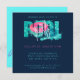Jeter une fête de piscine tropicale et à la recherche d'une invitation appropriée? Ne cherchez plus ! Ce design chic, cool et tendance présente des textes d'art avec une piscine bleu verdâtre, un flotteur rose chaud et une typographie moderne avec éclaboussures d'eau sur un arrière - plan bleu minuit est parfait pour votre fête de piscine. Ajoutez simplement les détails de votre fête sur la carte et préparez-vous à la fête !