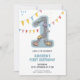 Design de course pastel doux en forme de numéro 1 avec de petites voitures mignonnes et un bunting festif. Idéal pour fêter le premier anniversaire d’un bébé dans un style aquarelle moderne.