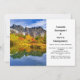Un faire-part de mariage avec une belle photo de campagne. Montagnes de pierre avec une forêt d'automne aux couleurs vives. Un lac tranquille reflète les montagnes, les arbres et les herbes.