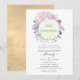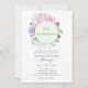 Invitation de 50 ans de mariage florale rose blush, violette et verte dans un style pastel chic avec un cadre géométrique doré.