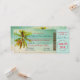 PixDezines carte d'embarquement vintage pour un mariage de destination. L'embarcadère passe au paradis avec un palmier suspendu. Il suffit de cliquer sur le bouton "customiser" pour le modifier.